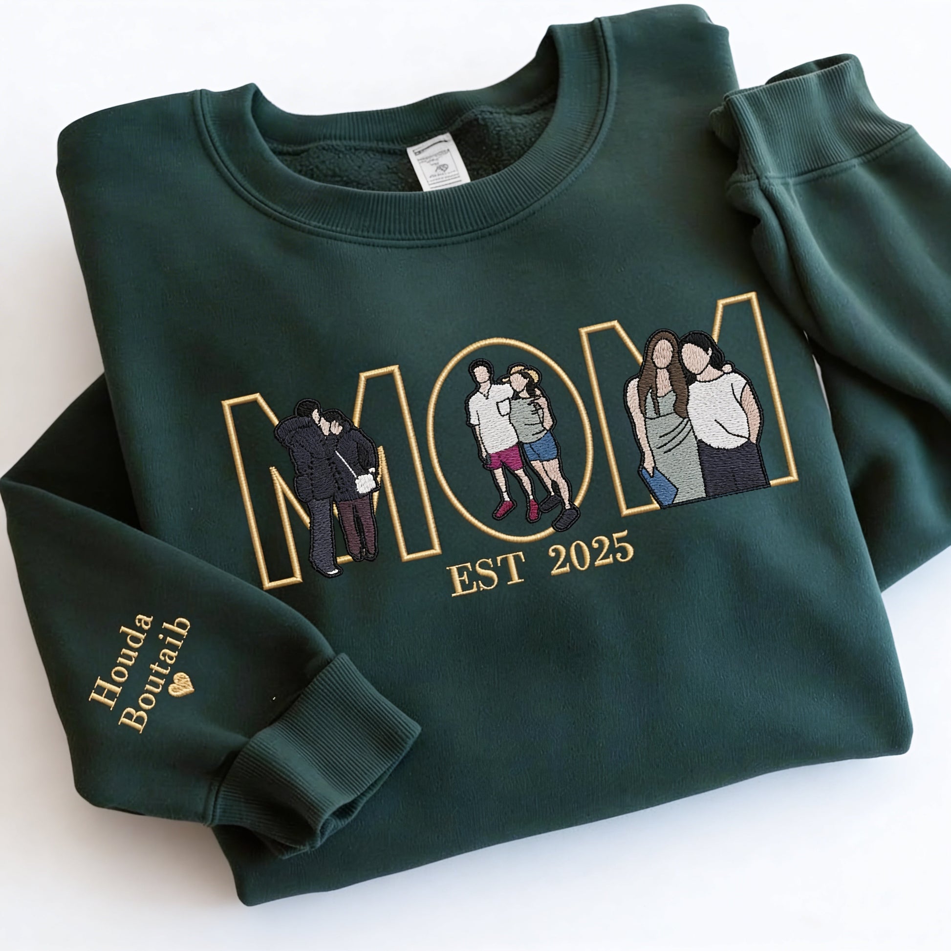 Custom Embroidered Family Photo Sweatshirt for Mama – Personalized Portrait Gift